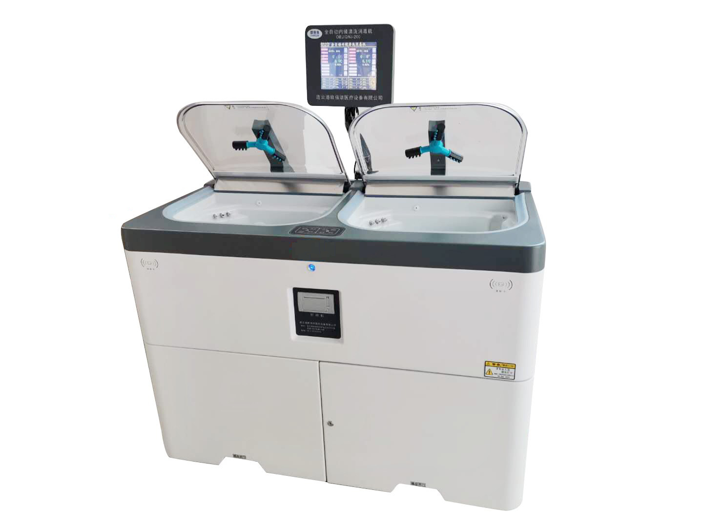 隨著內(nèi)鏡診療技術(shù)的迅速普及和不斷發(fā)展,消化內(nèi)鏡檢查已成為消化系統(tǒng)疾病診治必不可少的手段。內(nèi)鏡做為一種侵入體腔內(nèi)的儀器,所以內(nèi)鏡的材料特殊結(jié)構(gòu)復(fù)雜,不能耐高溫和高壓消毒,只能采用一些化學(xué)消毒劑浸泡,使用頻率高往往因清洗消毒時(shí)間不足等原因?qū)е孪緶缇粡氐锥l(fā)醫(yī)院感染的重要環(huán)節(jié)之一,為加強(qiáng)內(nèi)鏡清洗消毒工作,保障醫(yī)療質(zhì)量和醫(yī)療安全,國(guó)家衛(wèi)生制定了《內(nèi)鏡清洗消毒技術(shù)操作規(guī)范》,所以按照《規(guī)范》要求,認(rèn)真做好內(nèi)鏡清洗消毒規(guī)范管理,所以韻華采用全自動(dòng)內(nèi)鏡清洗消毒效果,取得良好的社會(huì)效益和經(jīng)濟(jì)效益。全自動(dòng)內(nèi)窺鏡消毒清洗機(jī),由機(jī)箱體組成,包括:上蓋,清洗消毒槽,電源開(kāi)關(guān),前控制面板,機(jī)箱前門(mén),前門(mén)把手鎖,打印機(jī),冷光源掛架;機(jī)箱體上部為清洗消毒槽,左側(cè)設(shè)有冷光源掛架,右側(cè)設(shè)有電源開(kāi)關(guān);打印機(jī)和前控制面板安裝在機(jī)箱前門(mén)上方.本實(shí)用新型采用酸性氧化電位水為消毒液,機(jī)箱體選用高強(qiáng)度材料精心加工而成,堅(jiān)固耐用,不變形;清洗消毒槽采用進(jìn)口仿瓷原料一次注塑成型,表面潔白光亮,耐腐蝕,使用壽命長(zhǎng);上蓋以透明亞克力板材一次熱壓成形,透光性強(qiáng),不易變色,發(fā)暗;該機(jī)以高壓流動(dòng)水旋轉(zhuǎn)噴淋和消毒液循環(huán)噴淋浸泡相結(jié)合,配合水洗,酶洗,酒精沖洗內(nèi)管道,吹干等工序自動(dòng)完成對(duì)內(nèi)鏡的清洗消毒。